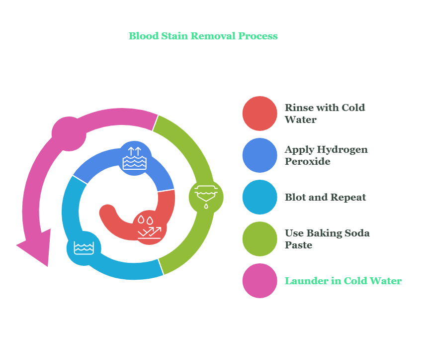 Blood stains are stubborn because they contain proteins that stick to fabric fibres when heated. A temporary stain can result from a small cut or nosebleed; quick action is key to avoiding a permanent stain.