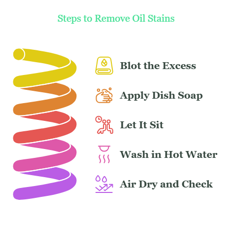 - Blot the Excess: Absorb as much oil as possible with a paper towel or cloth; avoid rubbing to prevent spreading.
